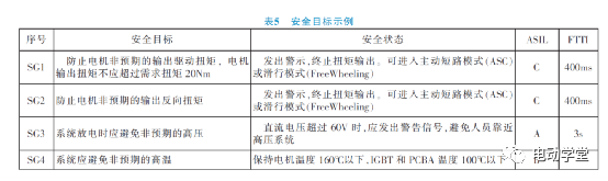 应确定每一个摧残事宜的ASIL品级,并为具有ASIL品级的摧残事宜确定一个安适方向。对待上述摧残事宜,其安适方向为:防备电机非预期的输出驱动扭矩。安适方向是合系项最高层面的安适条件,安适方向的界说应包括其合系属性,征求ASIL品级及确定ASIL品级所需的量化值,即:安适胸襟。对待本文中所阐述的PCU体例,展开HARA阐述后取得表5中的安适方向示例。