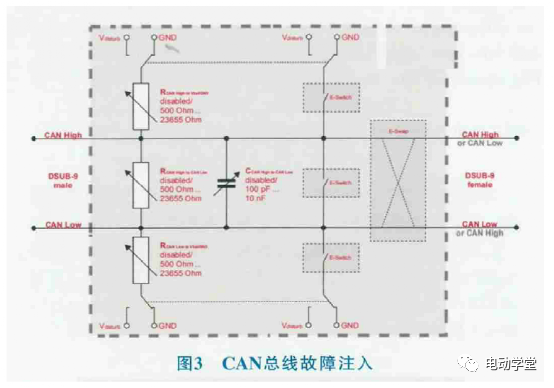 以CAN总线挫折为例,电机限制器大凡睡觉正在动力CAN汇集中,驾驶员的限制敕令输出给整车限制器,整车限制器经由战术实施后,输出扭矩限制指令给电机限制器,假如整车限制器和电机限制器之间的CAN传输发作挫折(比如:VCUCAN总线受骚扰导致CAN总线节点遗失、或CAN总线的R/C阻抗变更多半有能够导致信号摄取的不完备),电机限制器收不到扭矩指令,能够会形成整车摧残。图3是CAN总线挫折注入测试界面,模仿挫折如短途、断途、R/C阻抗等。