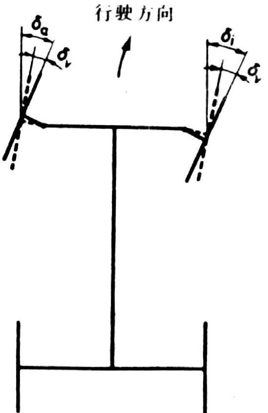 若是正在车身侧倾或者是因为侧向力的功用而上跳的车身外侧前轮发生后束,而着落的内侧前轮发生前束,则转向轮的转向角微小地反转一个角度δV,车桥具有不够转向性。