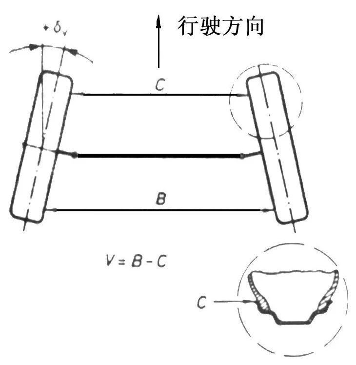 商讨阐明,当外倾角γ=+5’~+10’时,轮胎的磨损最匀称。更大的正值外倾角会使轮胎外侧胎肩磨损加剧。而更大的负值外倾角则加剧内侧胎肩的磨损。