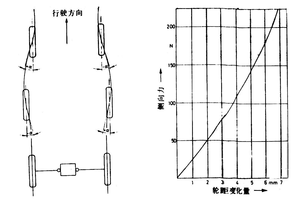 正在独立悬架中,汽车驶过不服道面时车轮的上下跳动会惹起轮距的蜕化,从而使轮胎发生侧偏角α。由此不单发生了侧向力,还使直线行使的才华降落,滚动阻力增大。
