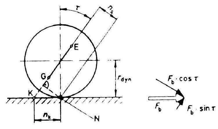 力FA的巨细或者是由附着系数μH决策(FA=μH·Gv),或者是取决于驱动力矩;侧偏距rR的巨细正在图3.91a的诠释中有讲述。