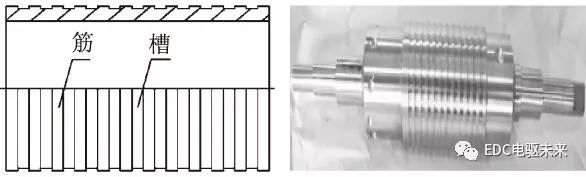 关于表贴式永磁转子,必需对永磁体采用扞卫方法:一种扞卫手腕是正在永磁体外面用高强度非导磁护套(如Inconel718、钛合金等),另一种扞卫手腕是采用碳纤维等高强度纤维绑缚。两种资料的特色如表8所示。商量温度和弯曲应力时碳纤保卫套的最大可秉承应力约为1 400~1 700 MPa,大于合金钢护套最大抗拉强度,但合金护套可秉承的最大温度(290 ℃)远高于碳纤保卫套(180 ℃)。合金钢资料的电导率较高,电机空间谐波和功夫谐波会正在合金扞卫套中出现较大的涡流损耗。采用碳纤维绑缚时扞卫套厚度和高频涡流损耗较小,但碳纤维是热的不良导体,晦气于永磁转子的散热。文献[138]先容的正在合金扞卫套内层插手铜屏障层可有用制止转子涡流损耗,但对碳纤维扞卫方法制止结果并不彰着。文献[82]正在合金扞卫套上开设轴向和周向浅槽来低重转子涡流损耗,周向浅槽构造如图9所示。