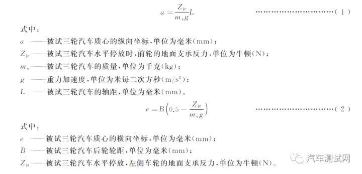 ——更改了三轮汽车质地参数、尺寸参数、质心坐标的衡量设施(睹5.2.1~5.2.4,2009年版的4.2);