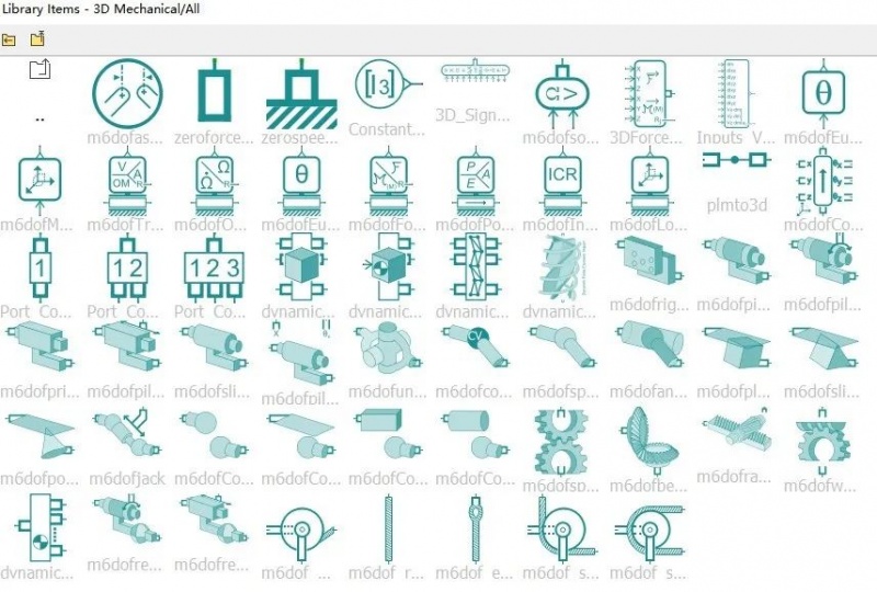 同样,Amesim供给实用于差异使用场景的刻板体系,网罗:1D、2D平面机构、3D三维刻板等等尺度机构模子、各式接触模子等等,周详如下图:
