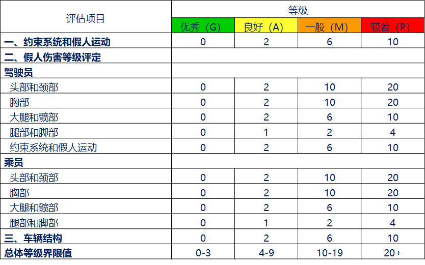 乘员侧正面25%偏置碰撞评议分为束缚体系和假人运动、假人侵害、车辆组织三个方面,对车辆的乘员安静扞卫机能举行测试评议。