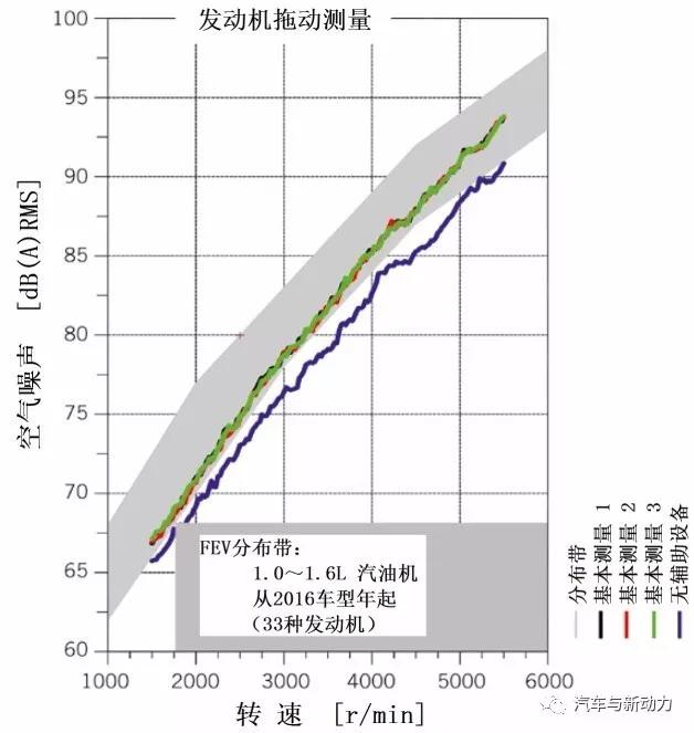 正在前文已先容了改观NVH个性的发起机布局策画,并指出了正在早期策画阶段动态布局模仿已保障了何如告捷地告终云云的效益。图9示出了正在发起机试验台上无负荷外源拖动时的氛围噪声辐射。从FEV散布带中就能很好地识别出CE12发起机具有较高的潜力。正在初度试验时该发起机的噪声水准就位于散布带的下面三分之一范畴内。