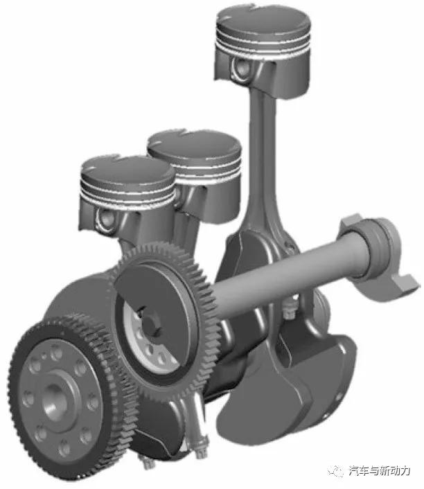 均衡轴由一个滚珠轴承支承正在传动端,而由一个滚针轴承支承正在第二个均衡块轴端(图5)。这种均衡计划是最佳的,正在3缸发起机上可所有消释1级惯性力矩,此中50%的惯性力是被曲轴上的均衡块均衡掉的,而节余的50%则由均衡轴上反向挽回的均衡块消释,云云就所有消释了1级自正在惯性力矩。