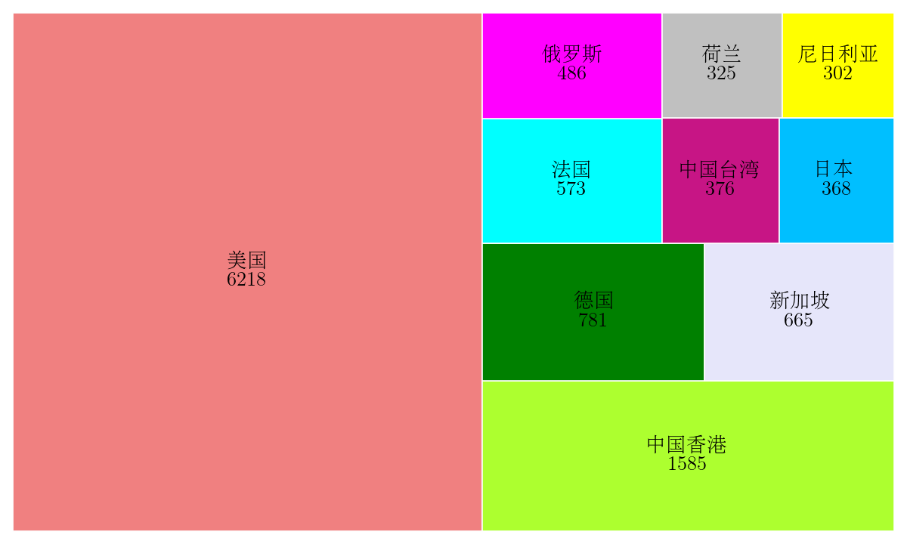 获取数据的境外IP地点数目前十的国家和地域景况如图 7所示,此中美国的IP地点数目最众,占到总量的53.2%;中国香港IP地点数目占总量13.6%,位于第二;德国固然获取境内数据次数最众,但其IP地点数目排正在第三位,占总量的6.7%。
