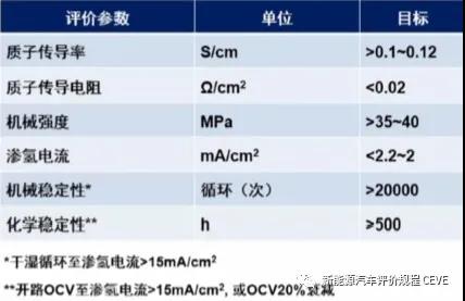 质子交流膜的效用是固态电解质,传导质子,隔离南北极,具有优秀的离子传导率、化学安静性、呆滞安静性、尺寸安静性,目前常用的是长侧链全氟磺酸膜化学机合式,EW值为1100。电池职能随Nafion膜厚度的改变而改变,跟着膜的减薄,质子传导高,电池职能上升;但膜减薄,呆滞职能降低,气体分泌率增大,化学安静性差,存正在热、呆滞、化学衰减题目。于是膜的繁荣宗旨为复合膜,复合膜取代均质膜,可抬高耐久性,目前最常用的是物理复合的众孔膜,除了巩固呆滞职能以外,还需巩固化学安静性,好比增加自正在基淬灭剂CeO2可抬高膜的化学安静性。巩固复合膜职能睹下表: