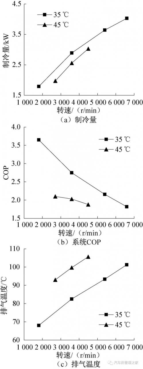 4 结论本文通过实践考虑了带回热器的纯电动汽车用R290热泵空调体系的夏日制冷、冬季制热本能。结果解说:1)正在35 ℃/27 ℃通例制冷工况,压缩机转速1 800~6 600 r/min时,体系制冷量和COP区别为1 789~4 027 W和1.82~3.65;45 ℃/27 ℃高温制冷工况,压缩机转速2 700~4 500 r/min时,体系制冷量和COP区别为1 973~3 031 W和1.88~2.10。2)转速3 600 r/min、车内温度27 ℃时,境遇温度由35 ℃升至45 ℃时,制冷量和COP区别削减约11.4%、 26.2%,排气温度增进20.9%掌握。别的,行使回热器不妨改良体系制冷本能,减缓体系本能衰减;正在高转速或高温工况,成效特别明显。3)正在-20 ℃/20 ℃低温工况、压缩机转速6 000 r/min时,体系制热量到达2 911 W,对应的 COP为1.80;转速3 600 r/min时,制热量为1 965 W,COP为2.30。正在-25 ℃/20 ℃低温工况、转速3 600 r/min,体系制热量为1 658 W,COP为2.16。由此可睹,R290热泵体系正在低温境遇下具有明显供热上风。4)因为R290的易燃性,体系增进了二次换热的水环道,巩固了安然牢靠性,但正在必然水平上酿成了体系本能的衰减;与通例热泵体系比拟,带水环道的体系制冷量衰减300~500 W(境遇温度45 ℃、车内温度27 ℃),制热量衰减200~400 W(境遇温度-20 ℃、车内温度20 ℃)。