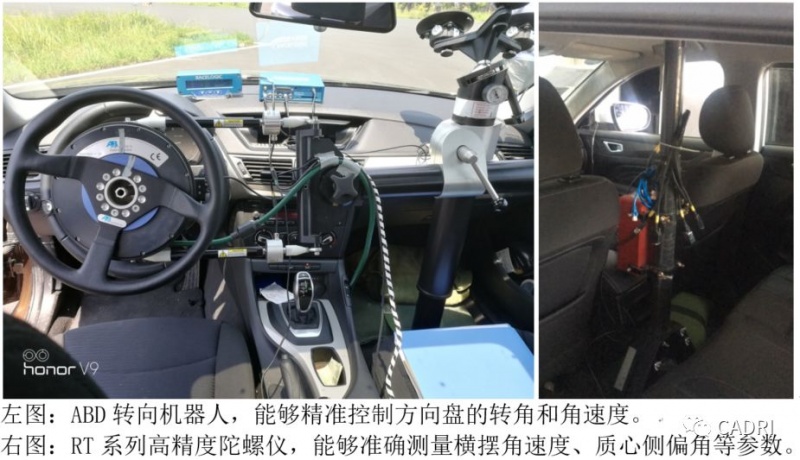 “正弦停顿”试验正在实行转向操作时,采用自愿转向安装–转向机械人。同时,辅之于高精度陀螺仪,衡量车辆正在试验经过中的横摆角速率、质心侧偏角等参数。苛重试验修造睹下图。