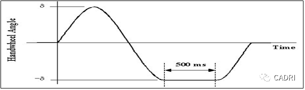 中国消费者汽车驾乘指数操纵“正弦停顿”试验测试车辆的ESC机能。“正弦”是指试验中近似正弦波形的转向角输入。而“停顿”是指目标盘正在负转角极限值时维持目标盘转角500毫秒。测试时高级位滑行、车速为80±2km/h。操纵转向机械人对车辆施加正弦波目标盘转角(如下图所示)。测试时,目标盘转角从1.5A起首(A值为侧向加快率0.3g对应的目标盘转角),以0.5A幅度逐渐加大目标盘转角幅值实行众次试验,直至6.5A、270°或300°。
