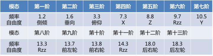 对策划机1000rpm和1400rpm时整车垂向振动实行傅里叶变换,进而取得共振频率,与十三自正在度整车体例模态比照。