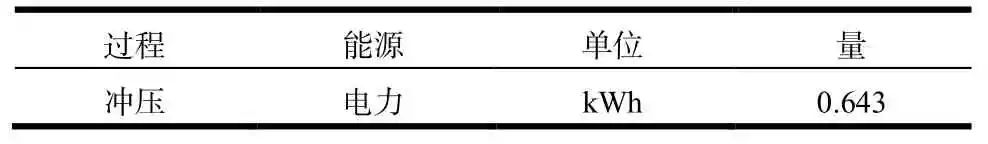 左前翼子板分娩阶段要紧为钢板冲压历程,冲压历程所行使的能源为电力。如表2 所示,单个左前翼子板的分娩阶段共耗费0.643 kWh 的电,此数据通过冲压线总电量除以冲压线体总产量获得。