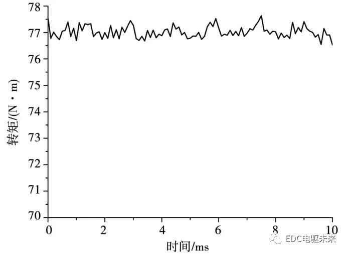 图16为电机正在输入电流为10 A时所对应的转矩弧线 N·m,转矩摇动小,实行了电机低速大转矩输出。