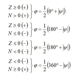 这个正切的不确定性使得正在对上述提及的商举行最终准备前确定分子(N)和分母(D)的符号有其须要性。确定符号的紧急性正在于符号能阐发角度 ψ 正在哪个象限。