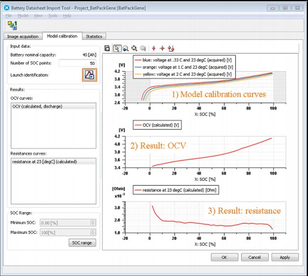 依据差异温度和差异SOC下的充放电弧线,能够直接导入试验数据到电池模子中,实行主动无误 标定,天生模子所需求的参数;