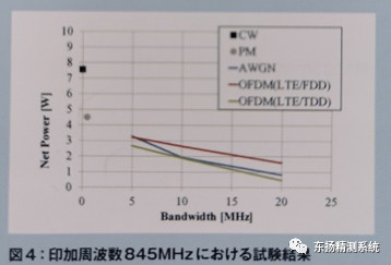 图4显示的是中央频率正在845MHz境况下的实行结果。纵轴为EUT十分爆发时分的净功率,横轴为各信号的带宽【MHz】。