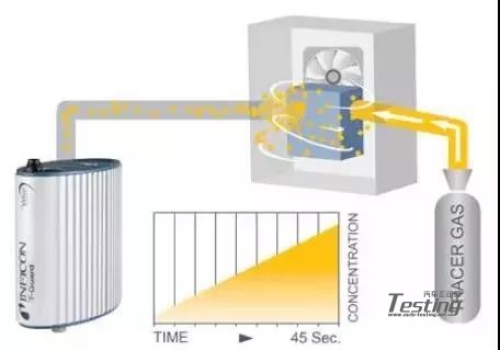 正在容易舱室中,通过检测气体接口向燃油箱输送少量氦气或氢气。因为不行对燃油箱举行抽真空(燃油箱的答允最大压力负荷普通仅为200至300 mbar/3至4 psi),燃油箱将会采用泵送法举行充气,它一侧的氛围将被抽出,另一侧则会回充氦气,以确保充入的氦气浓度贴近100%。充气后,检测气领会通过走漏通道懒散至集聚室中。电扇可确保累积室内的测试气体平均分散,由此避免了走漏处所的影响,保障丈量值的无误。T-Guard氦气传感器确定此情况中的检测气体含量,并通过该值盘算推算部件的走漏率。