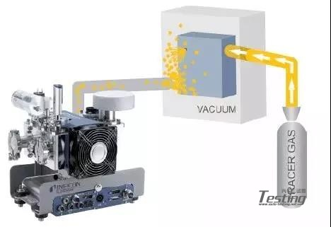 正在这个检测进程中,须要将燃油箱放正在检测舱室内,并将燃油箱衔接到真空体例。舱室盖子盖好后,大型真空泵将对燃油箱内部和真空舱室举行抽真空操作。部件和舱室是同时被抽真空的,以避免燃油箱受到过高的压力负荷(普通不进步200至300 mbar/3至4 psi)。随后,会向部件回充少量氦气(同样不进步燃油箱的最大压力负荷)。倘使存正在走漏,氦气将会向外逸出,INFICON LDS3000氦气检漏仪(衔接到真空舱室)会检测到从燃油箱中逸出的氦原子。