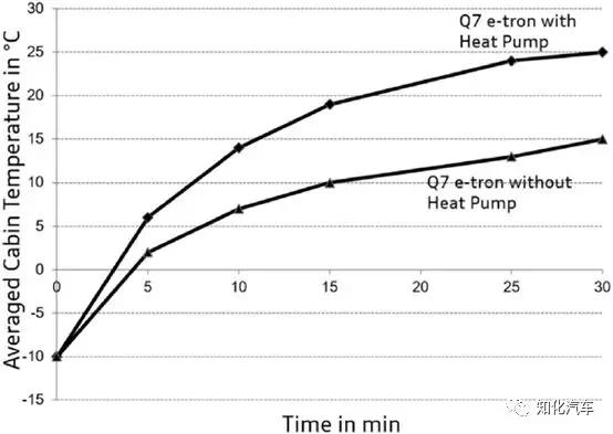 正在-10℃的处境下实行测试,对有无热泵插足的结果实行比力,如下图能够看出,具有热泵插足的加热,速率更速也更有用。