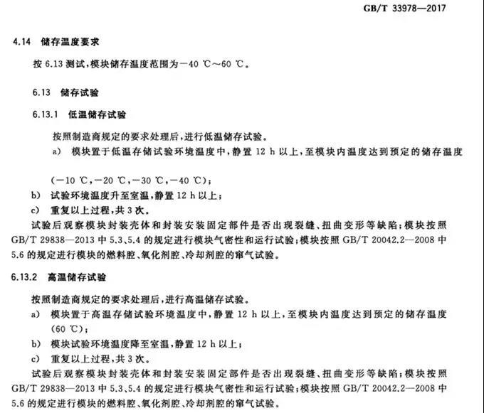 遵循“GB/T 33978-2017 道道车辆用质子换取膜燃料电池模块”的闭连哀求,需求对被检产物差别正在低温-10℃、-20℃、-30℃、-40℃和高温60℃时,举行蓄积、气密性、运转试验、窜气试验等项目举行检测。