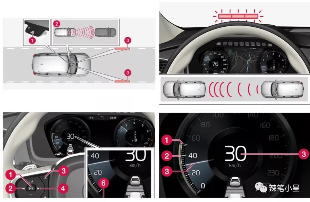 自适合巡航编制ACC凡是由众功效倾向盘上的ACC按钮激活,然后须要设定巡航速率和巡航跟车间距。确认此后自适合巡航编制就会按照前车环境主动依旧车距和车速,而且常常会正在仪表盘上显示眼前车速和设定车速。少许新一代的自适合巡航编制还可能主动依旧车道,而且正在或者产生碰撞变乱时发作声光报警。