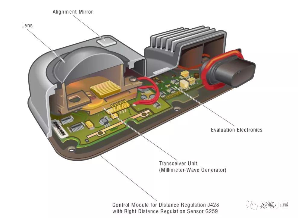 咱们以奥迪采用的自适合巡航编制搭载的雷达传感器为例,它凡是装置正在进展气格栅部位,对前车实行测距和测速。它凡是由无线电镜头、校准镜片、微波发射单位、掌管模块和信号管束电道构成。