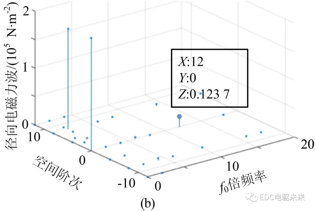 仿真获得电机径向电磁力波,力波存正在空间与时代上的转变,对其举行二维傅里叶变换,获得径向电磁力波的时空漫衍,如图7所示。