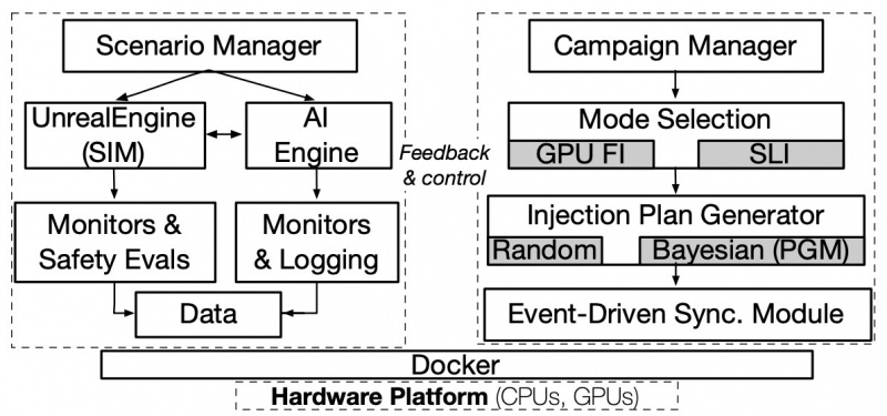 然而,正在现实的驾驶境况中对这些体系举行评估平昔具有挑衅性,奇特是因为随机阻滞的展现。阻滞注入(Fault injection,FI)是用于测试盘算和收集物理体系正在阻滞下的弹性和差错收拾才具的一种成熟手腕。基于FI的自愿驾驶评估提出了一个特有的挑衅,不但由于自愿驾驶的繁杂性,也由于AI正在如此一个自正在滚动的操作境况中的中央职位。另外,自愿驾驶体系代表了软件和硬件时间的繁杂集成,这些时间仍旧被阐明容易展现硬件和软件差错。改日,代码繁杂性的扩张只会加剧这个题目。