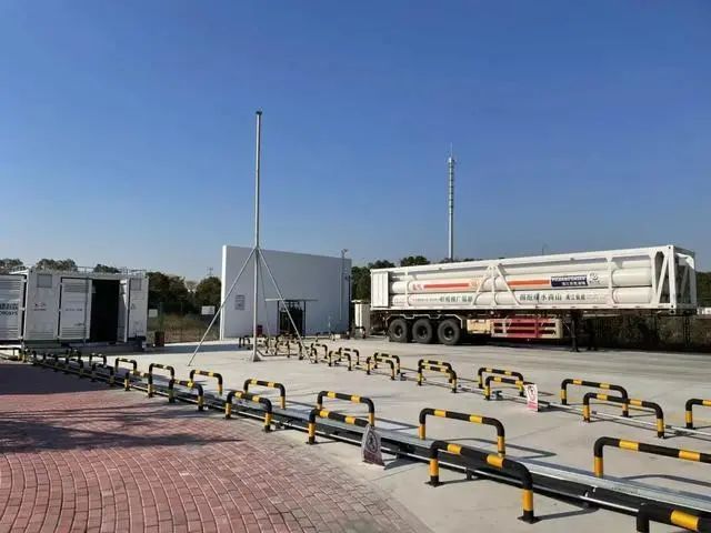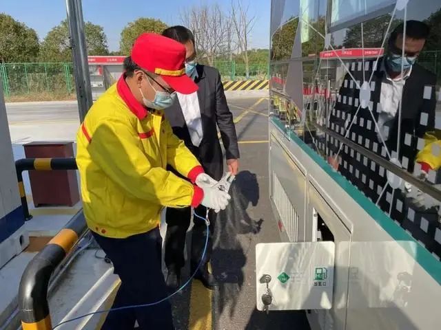 间隔鸿音广场站不远,即是一座为临港7道量身打制的撬装式加氢站。事情职员一手持加注枪,另一手拿着一个氢气探测仪,下手给公交加注氢气。