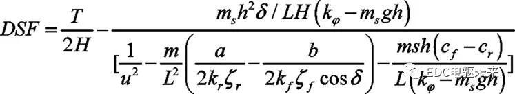 不光如许,美国NHTSA正在US-NCAP评判中,还规章有Fish-Hook、J-turn等动态测试。国标GB/T 6323-2014 《汽车把握平静性试验本事》也对把握平静性测试本事做了规章,如蛇形试验、转向瞬态反响考验等动态测试。“汽车的瞬态侧倾阈值比准静态时的小。对付轿车和众用处车辆,阶跃转向时的侧倾阈值比B/(2Hg)低约30%,而货车则低约50%。”[4]为了切确的刻画汽车动态抗侧翻本能,南京航空航天大学金智林博士正在其博士论文《运动型众性能汽车侧翻平静性及防侧翻操纵》中给出了汽车侧翻动态平静因子(Dynamic Stability Factor,DSF)(式7)[9]。