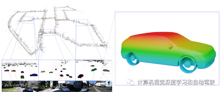 给定检测到的 LD,LT-map 对核心节的每个枢纽帧履行节间变动更新。与上传/下载全盘舆图的基于速照本事比拟,仅包括不同的增量舆图具有上风。2 “DSP-SLAM: Object Oriented SLAM with Deep Shape Priors“, arXiv,August,2021作家来自University College London。DSP-SLAM(Deep Shape Priors-SLAM),这是一种面向倾向的SLAM体系,可认为前景倾向构修富厚而准确的汇集3D模子联结舆图,而稀少的地标点透露后台。DSP-SLAM将基于特点SLAM体系重修的3D点云行为输入,通过对检测物体举办汇集重修来巩固其稀少舆图的才力。通过语义实例朋分来检测倾向,并通过一个二阶优化,特定种别(category-specific)的深度样式嵌入行为先验,推测样式和状貌。倾向-察觉BA构修一个状貌图,协同优化相机状貌、倾向处所和特点点。DSP-SLAM 能够正在 3 种分别的输入形式,即单目、立体视觉或立体视觉+LiDAR,以每秒 10 帧速率运转。项目网页:如图所示:DSP-SLAM 构修了富厚的倾向-察觉舆图,供应了检测倾向的完善周密样式,同时将后台简单地行为稀少特点点发送;正在KITTI 00上重修舆图和相机轨迹。
