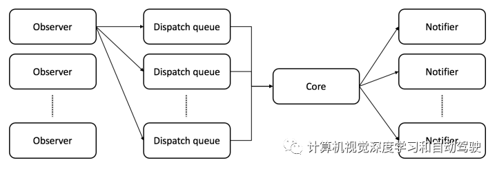 给定入射激光扫描,第一步是正在预滤波器中举办管束,减小其尺寸并去除噪声。过滤后的点云同时发送到两个模块。最紧要的模块是跟踪器,与先前滤波的扫描举办scan-to- scan成家(好比适用本事 ICP, GICP, VGICP 和 NDT),推测机械人现时位移。另一个是地面检测器,呈现机械人相对地面的状貌,增添对轨迹的高度和扭转相仿性。现时状貌推测连同其对应点云一道发送到闭环检测器(基于SC算法)模块,正在新点云和以前点云之间找到闭环,再次履行scan-to- scan成家。另外,用状貌、闭环和地面系数(由地面检测器模块推测)构修pose graph,表征机械人的轨迹。结尾,对pose graph举办优化,以普及状貌推测精度。IMU和GPS数据(图中粉血色区域)能够集成正在pose graph天生器模块,普及推测轨迹的精度。另外,估计算里程计(比方,通过分别的传感器或体系)能够行为scan matching的初始猜想供应给跟踪器。结尾,预跟踪器模块(图中绿色区域)履行众级scan-to- scan成家,正在跟踪之前火速推测机械人运动。每个模块的架构如下:它由一个或众个observers、一个或众个dispatch部队、一个core和一个或众个notifiers构成。另外,ART-SLAM是一种零拷贝软件,允诺对多量数据举办圆满矫正,同时将其保全正在内存中。