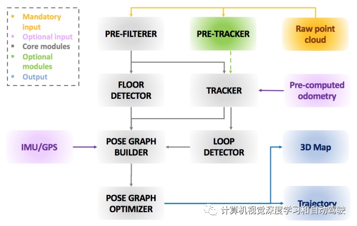 通过锚节点(anchor node)弹性地管束各节,而子模块 LT- SLAM 可用 LiDAR 正在共享帧中拼接众节。