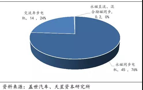 永磁电机为国内主流途径年新能源汽车驱动电机装机量达59.5万台。永磁同步电机占主流,装机量赶过45万台,占比高达77%,调换异步电机装机量14万台,占比24%。