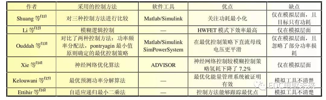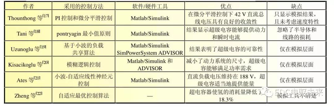 Tani等对燃料电池-超等电容混杂电动车的能量统制体例举办了咨询,结果解说,燃料电池有肯定的输出,而超等电容可能供给较大的瞬时功率。Uzunoglu等利用了一种基于小波的功率成亲算法,结果解说,当输出功率较高时,输出电压较低。之后,Kisacikoglu等又对燃料电池-超等电容混杂动力体例应用吞吐逻辑管制举办了负载分拨的咨询。Ates等利用小波-自适合线性神经元管制混杂动力体例。Zheng等还举办了一项基于自适合最优管制算法的咨询,结果解说,与仅应用燃料电池比拟,超等电容器使氢的消磨量下降了18.3%。表4是对这些咨询景况的对照。