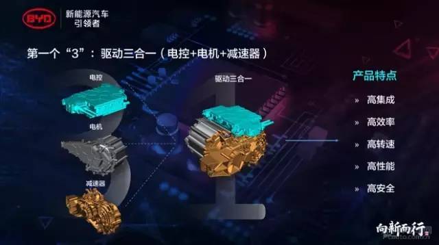 比亚迪e平台的第一项集成化表示正在驱动编制方面,提出把驱动电机、电机左右器和减速器等三个部件合为一体,省略了部件间的杂乱贯串、省略线束的数目,从而让完全的机合特别紧凑、体积更小、重量更轻,本钱也获得大幅度的低落。