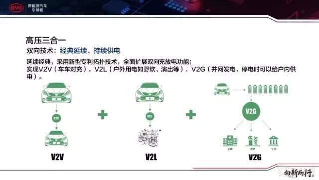 正在“供电”方面,比亚迪采用新型专利拓扑本领,扩展双向充放电效力,从而告终车车对充(V2V)、户外用电(V2L)和停电时给户内供电(V2G)。可能领会为比亚迪新能源车是一块大型的“挪动电源”,不只可能给其他比亚迪新能源车充电,到野外还能给用电修立供电,暖锅、炒菜都不是题目。