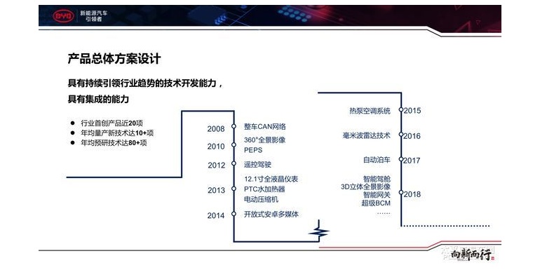 低压左右器分为车身域左右器、门控域左右器、后舱域左右器、灯光域左右器、BYD-HEART等几大片面,当这几项集成起来,本钱随之低落、重量也随之减轻。全体而言,把蓝牙钥匙、倒车雷达、空调左右和组合仪表等集成于一个车身左右器;电源模块由N个减为1个,MCU由N个减为1~2个,壳体由N个减为1个,安装工序省略(N-1)道,整车线年起,比亚迪新能源的行业开创产物快要20项,年均量产新本领达10项以上,年均预科研本领达80众项。2010年的360度全景影像、2012年的遥控驾驶、2014年的盛开式安卓众媒体编制、2016年的毫米波雷达本领和2018年的智能座舱等都有着划时期的旨趣,这些产物计划安排代表着比亚迪具有很强的新本领拓荒才智和电控高度集成的才智。