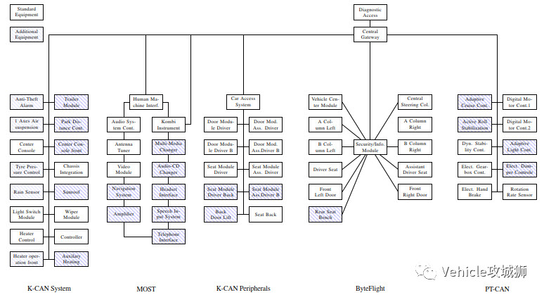 现在汽车具有众个能供应诸众功效的ECU。这些功效大概分散正在众个ECU上,个中公众半是相接至一个或众个别系总线的搜集节点。这些ECU统制众种功效,比如照明、空调、座椅、引擎或变速箱。统制器区域搜集(CAN)、局域互联搜集(LIN)和FlexRay等与其相接的各样总线体系组成现在汽车中的分散式搜集。
