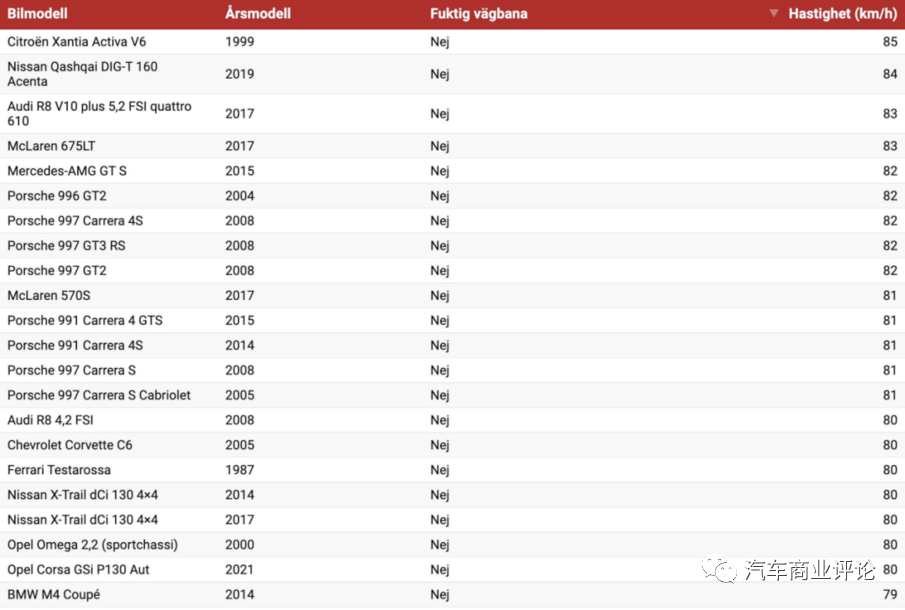 个中瑞典Teknikens Varld是环球最早举办麋鹿测试的机构,其测试被车圈奉为“圭表”。其官网显示:“测试功效超出70km/h的车型都属于优异秤谌,而功效超出80km/h的都属于极其杰出的圭表。”