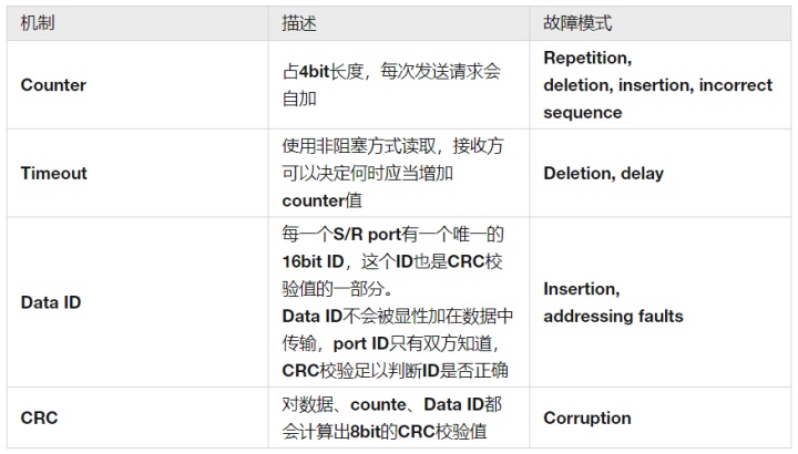 E2E爱惜假定安然干系的数据相易应该正在运转时被爱惜起来,能够的障碍来历有随机硬件障碍(比如CAN收发器寄存器损坏),扰乱(比如EMC扰乱),或者是软件的过错告终(比如RTE, IOC,COM)。