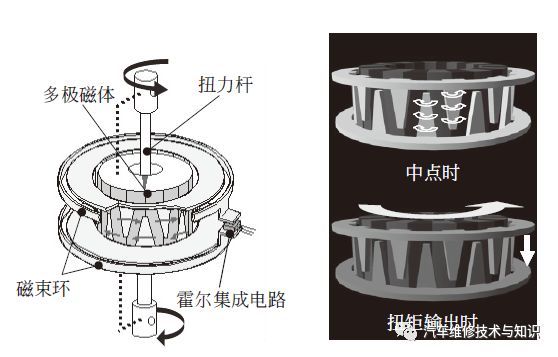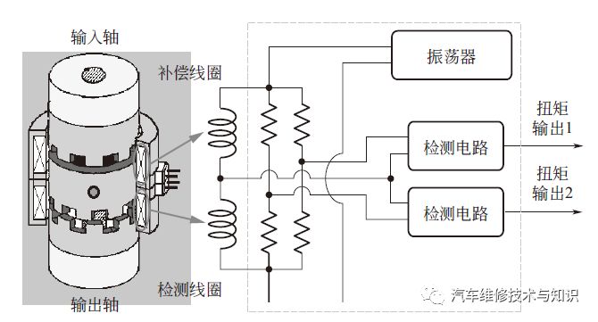 扭矩传感器的构制 ▲EPS的扭矩传感器詈骂常要紧的部件,因而常用的类型是可以确保牢靠性的非接触式。接下来,对非接触式扭矩传感器中3种合键方法举办解说。(1)磁感想式磁感想式是指装置于扭力杆上下名望的检测线圈和抵偿线圈的高低相对名望跟着扭力杆的回旋而蜕变,并通过外侧扶植的检测线圈获取相应磁途蜕变的方法,且这种方法的扭矩传感器已被平凡运用。