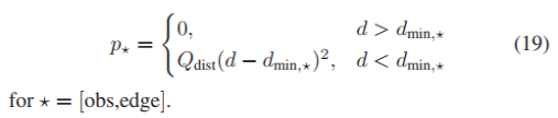 上式解释轨迹仅正在车辆与妨碍物隔断dmin,obs或道道周围隔断dmin,edge(由 rlef