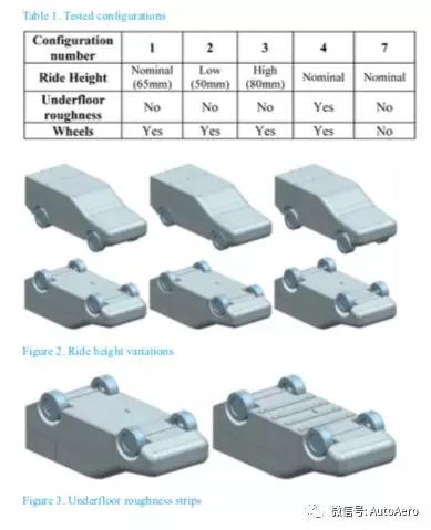 该模子旨正在促举行驶高度(地道底板到模子底面)的变动,地板下的粗略度以及有轮和无轮的测试。测试的设备列于表1,个中车身高度,地板下粗略度和车轮的变动图永诀如图2,图3和图4所示。车轮和轮胎不征求任何细节。车轮的下侧是扁平的,以模仿接触区域,轮胎下侧与地道底板之间有一个小间隙(2mm)。