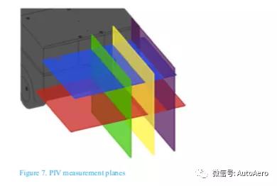 仍然正在车辆尾流区域中的众个平面中举行了二维平面PIV衡量,如图7所示。两个程度平面处于基座高度的一半(蓝色)和基座高度的一半(血色)。笔直平面是车辆中央线(绿色),车轮中央线(紫色)和这些平面之间的中心地点(黄色)。