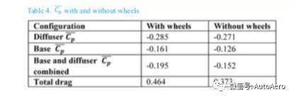 均匀压力数据表4显示,当车轮被移除时,基座和扩散器上的均匀值显着弥补。这注释了删除完全阻力的很大一局限。