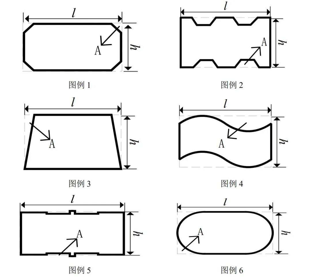 双极板外轮廓长度应衡量燃料电池堆双极板长度偏向的最远外轮廓尺寸,单元为mm;双极板外轮廓高度应衡量燃料电池堆双极板高度偏向的最远外轮廓尺寸,单元为mm,图3列举了大概的衡量场景,其他衡量场景应参考推广。